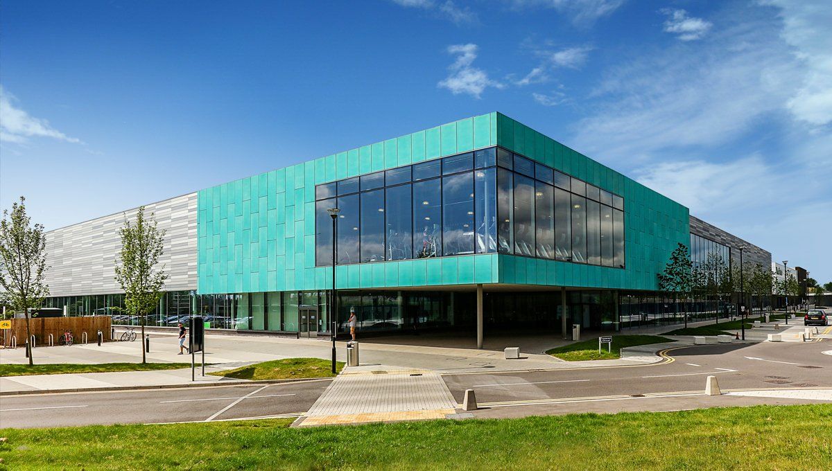 SCF were involved in the design, procurement and site management of the external cladding works inclusive of roof and wall cladding, curtain walling and rooflights. The standing seam was site welded to create the accute angle to the front of the building and creates an extremely crisp aesthetic which is best noted on the aerial view of the building.
