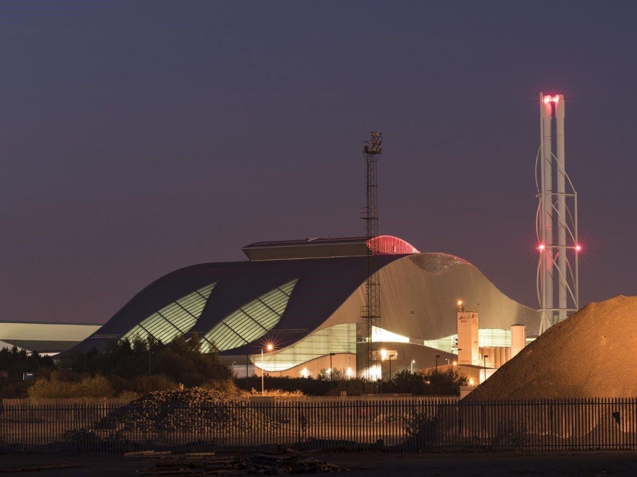 SCF were involved in the installation and site management of the full roofing and cladding package at Trident Park EfW. The project was extremely complex due to the building curving on plan as well as in section. The standing seam cladding was installed at 45deg. and was a huge logistical challenge for the building. The Roof Standing Seam was a complex task due to the pitch of the roof and required the installers to use specialist climbing kit to be able to walk up to the ridge point.